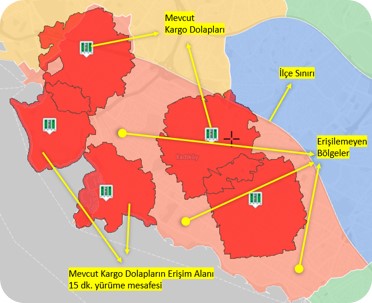Mevcut kargo dolaplarınızın 10-15 dakikalık yürüme mesafesi erişim alanları neler?