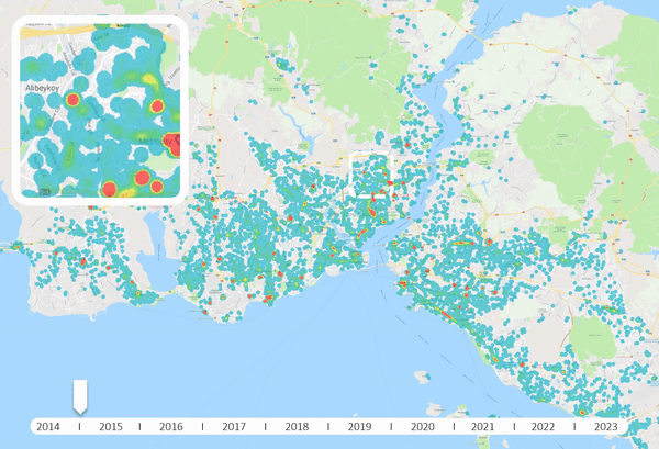 17 üst kategori, 146 alt kategori altında 4070 farklı markanın lokasyon ve diğer verilerini içeren Maptriks veritabanını içeren REPS çözümü kullanılarak incelendi. Yapay zeka tabanlı bir simülasyon ve tahmin aracı olan REPS ile İstanbul’daki farklı sektörlerin lider markalarının 2014 yılından 2018 yılına kadar mağaza sayılarındaki artışlarını inceleyerek pazardaki rekabeti analiz ettik.